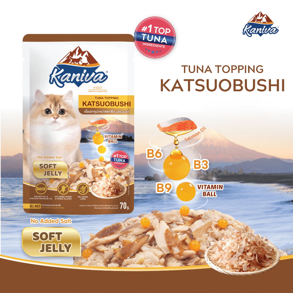DP 0 KANIVA Wet Food – Tuna Topping Katsuobushi – Makanan Basah Kemasan Pouch (70 gram)
