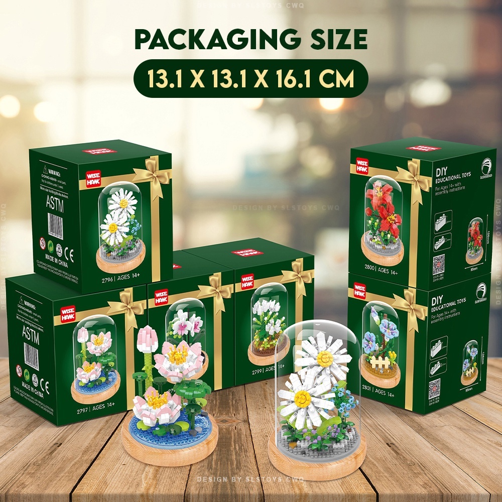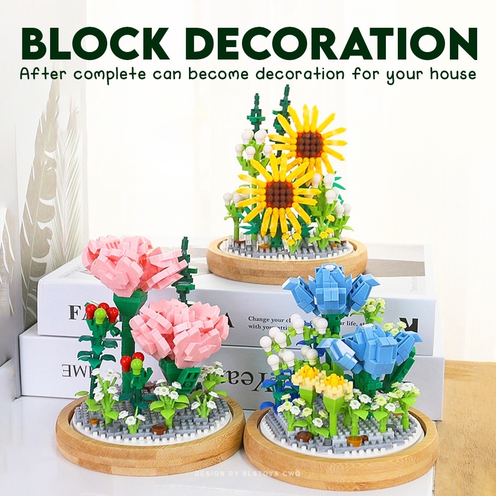 DP 0 ZHBO Mainan Bunga Buket DIY Anyelir Bunga Tulip Model 3D Susun Mainan Balok Flower Bricks Dekorasi Hadiah untuk