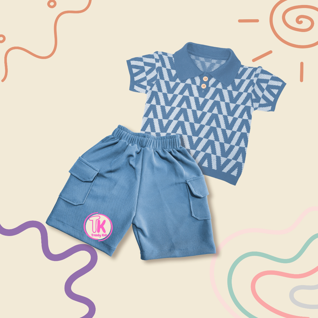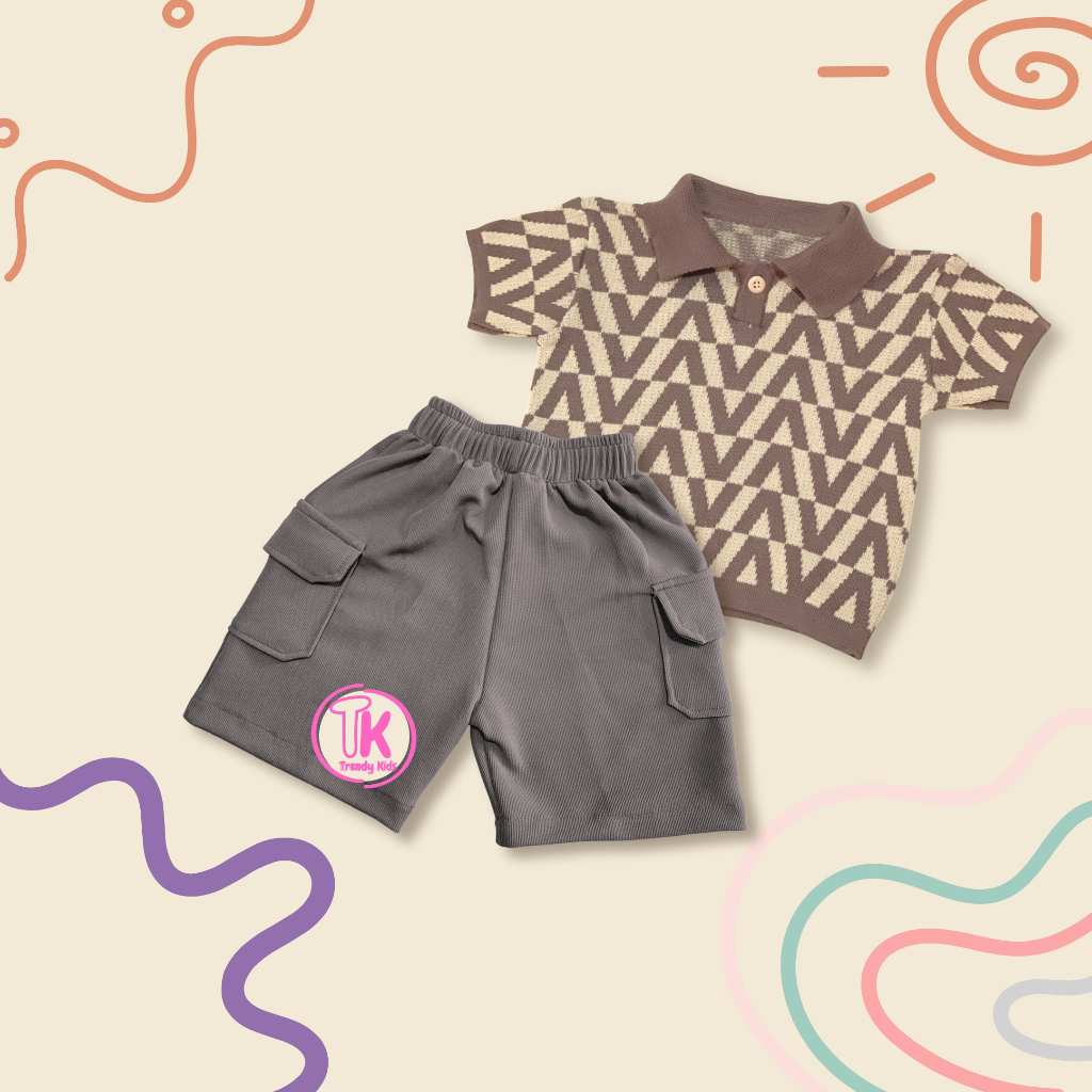 Oneset Anak Laki-Laki Polo Rajut & Celana Pendek Cargo 1-7 Tahun