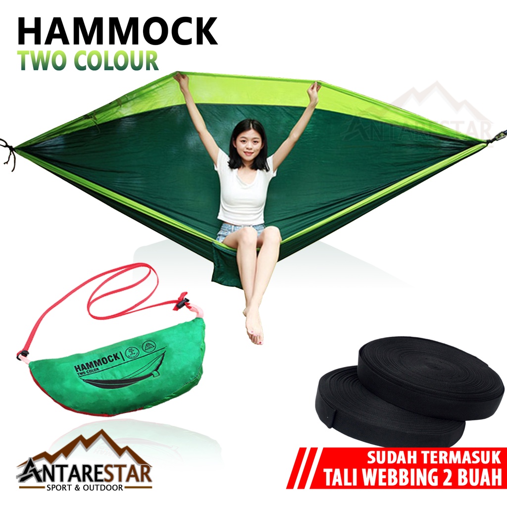 Antarestar Official - Hammock Double Ayunan Gantung Kombinasi 2 Warna Tempat Tidur Ayunan Kasur Gantung Camping Outdoor