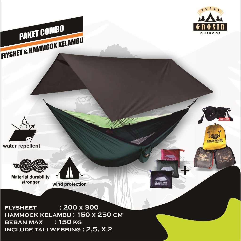 Paket Hammock Kelambu + Flysheet 2X3 - Hammock Flysheet - Flesit Hammock