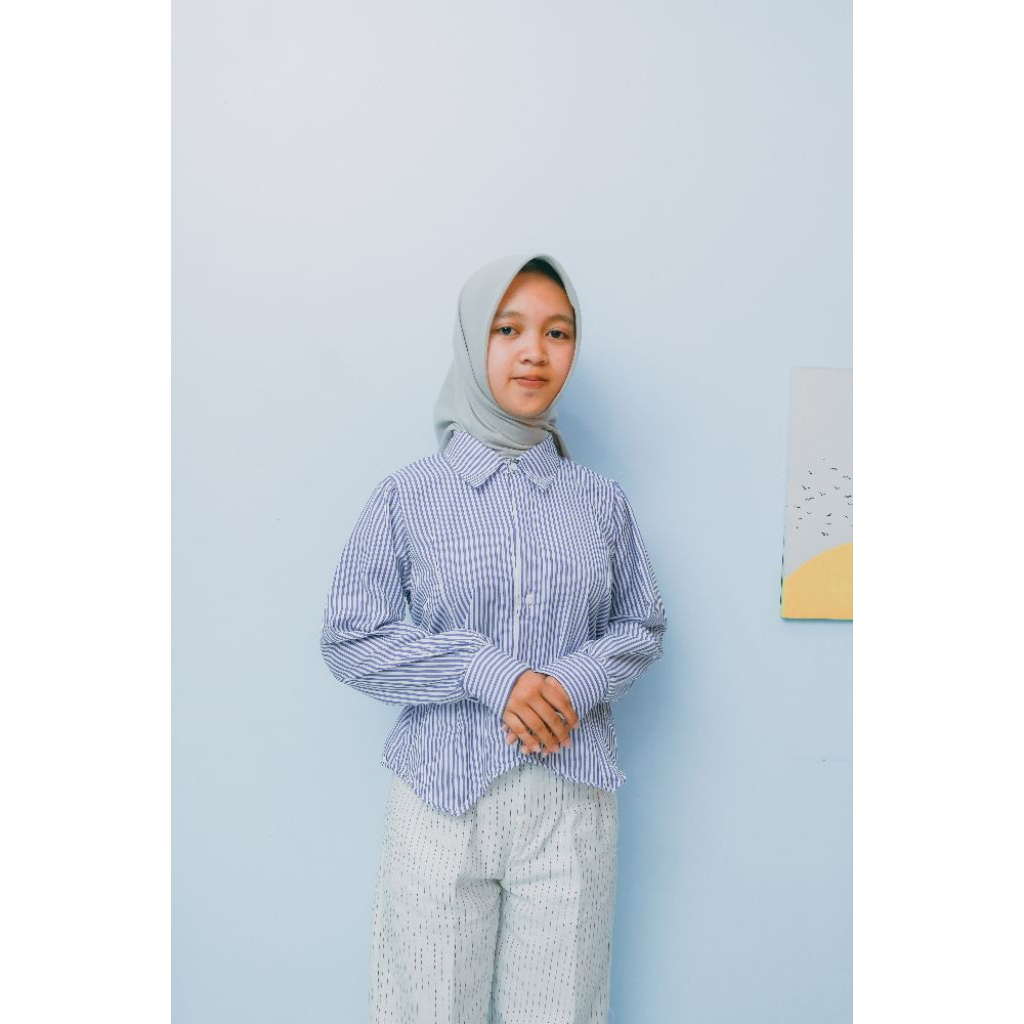 Naomi Salur Couple Ibu Dan Anak Perempuan Kemeja Blouse Couple Motif Salur Bahan Katun