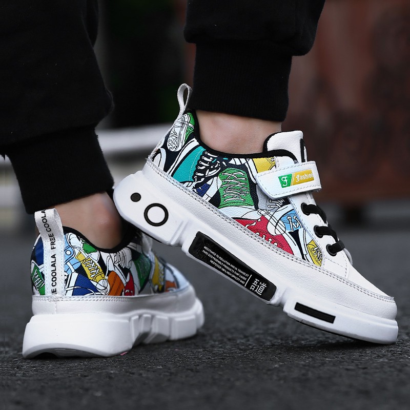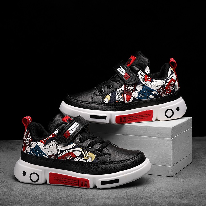 Aning Aningboy - Sepatu Anak-Anak Sneakers Warna Hitam Putih Motif Kartun Aneka Ukuran Untuk Sepatu Anak Lakilaki