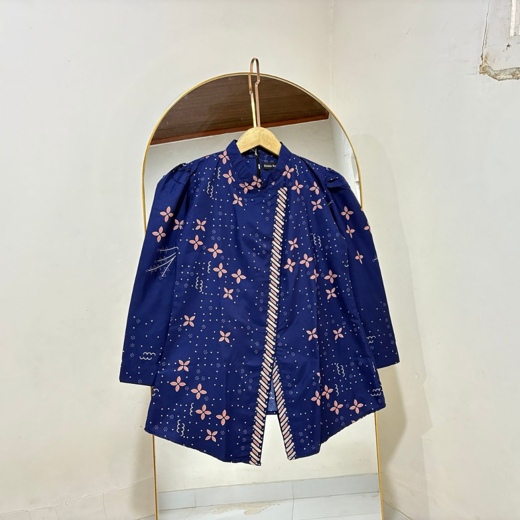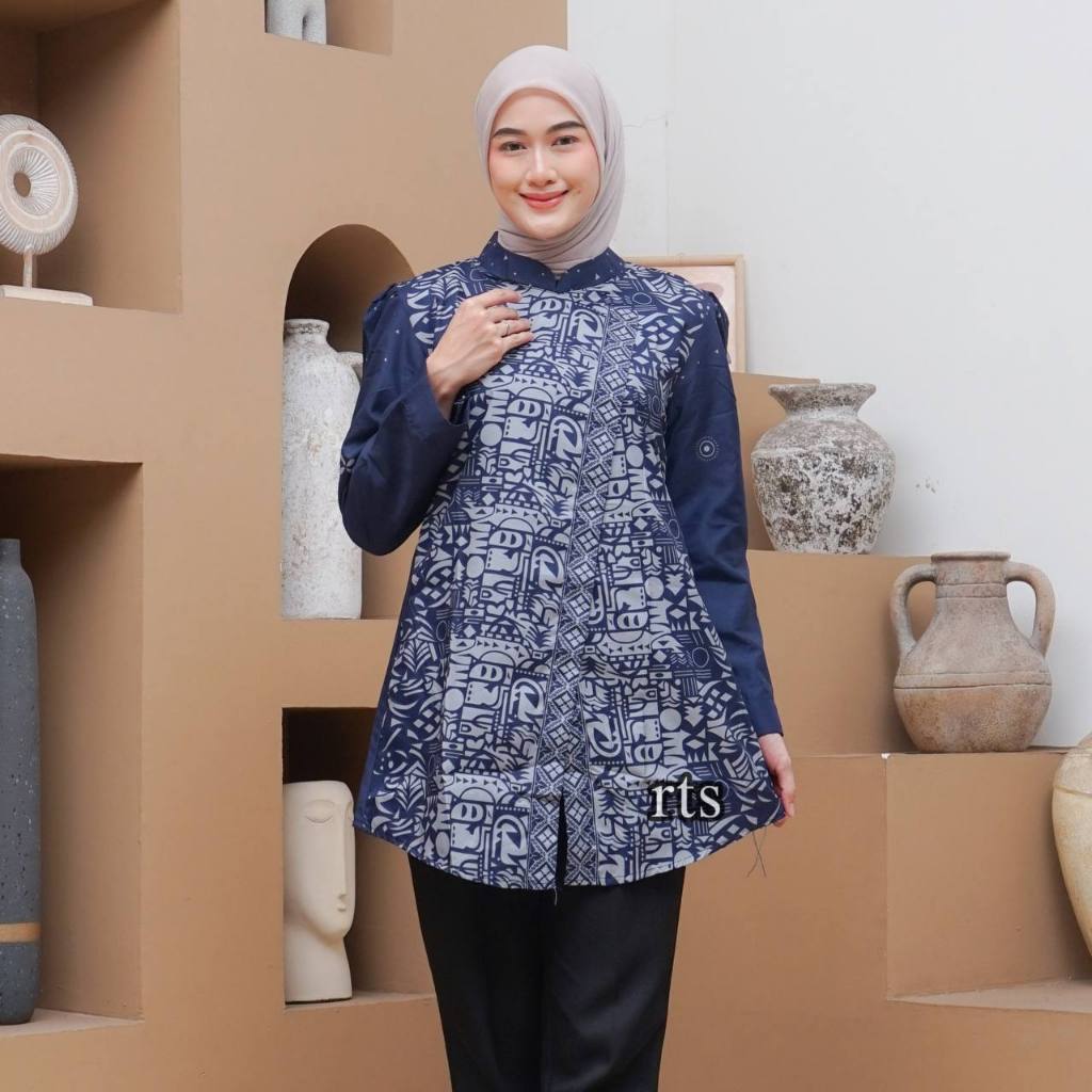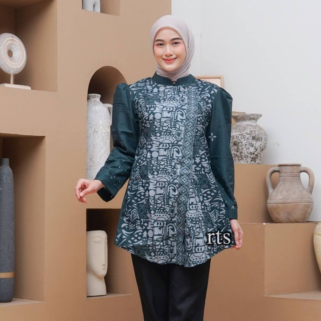 Batik Atasan Wanita Modern Baju Batik Lengan Panjang Puffy Janggan