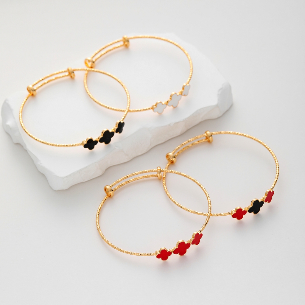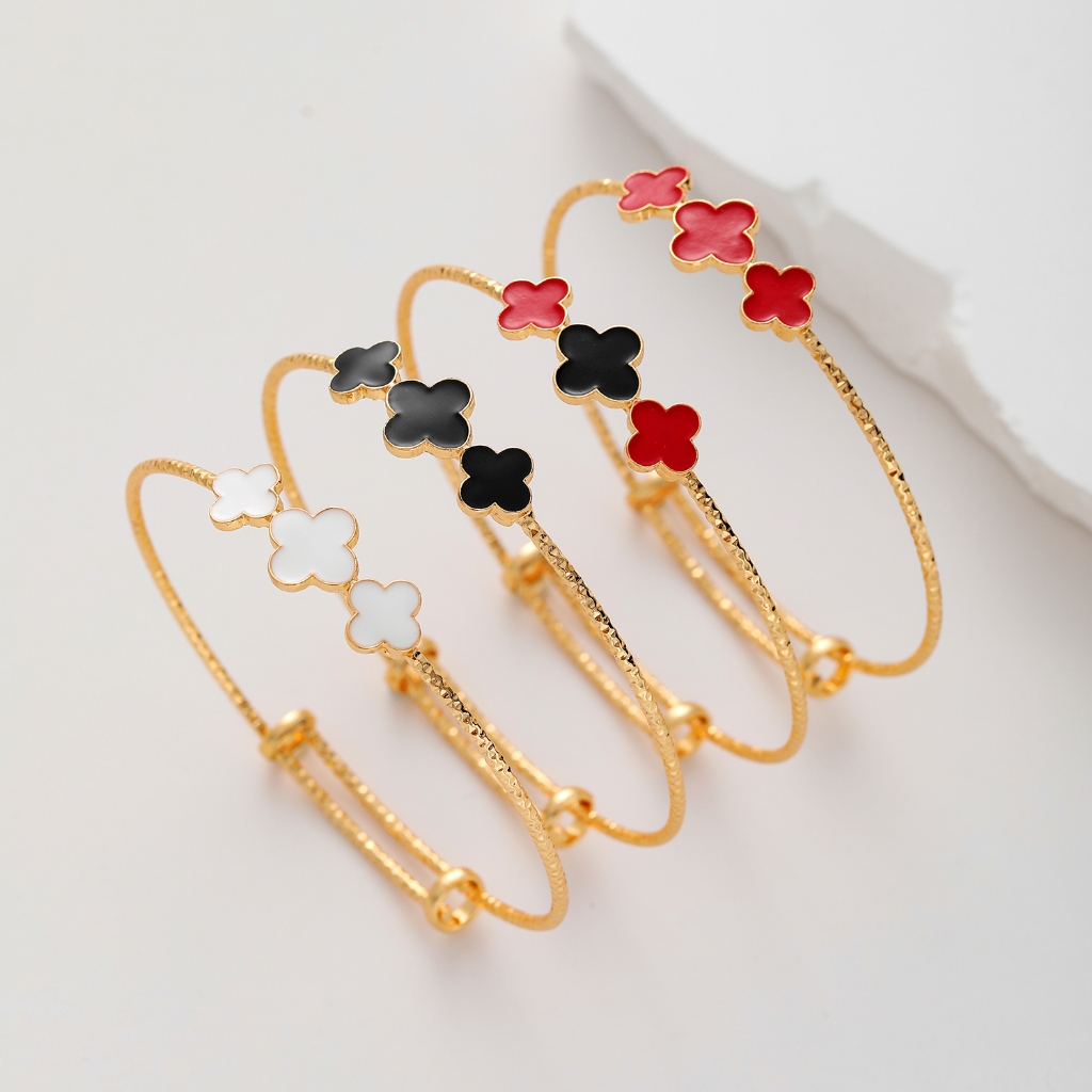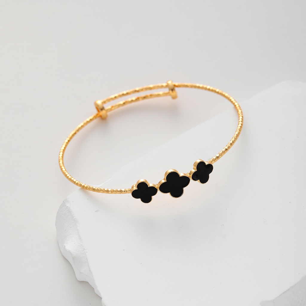 Hyl Jewelry 601B Wanita Gelang Titanium Bangle Bracelet Four Leaf Clover Terbaru Anti Karat Dan Keroncong Lilit Asli Sil