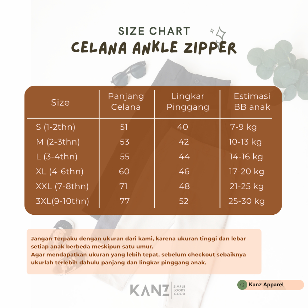 Ankle Pants Zipper Anak | Celana Ankle Anak / Bayi Usia 1 - 8 Tahun | Laki Laki Dan Perempuan