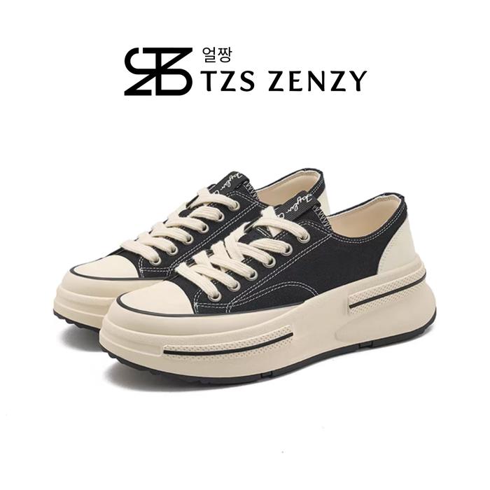 TZS ZENZY SOMI CANVAS KOREA DESIGNED - SEPATU SNEAKERS WANITA - SEPATU CANVAS WANITA - CANVAS LOW ROUND TOE CASUAL SHOES PUTIH HITAM - HITAM, SIZE 35