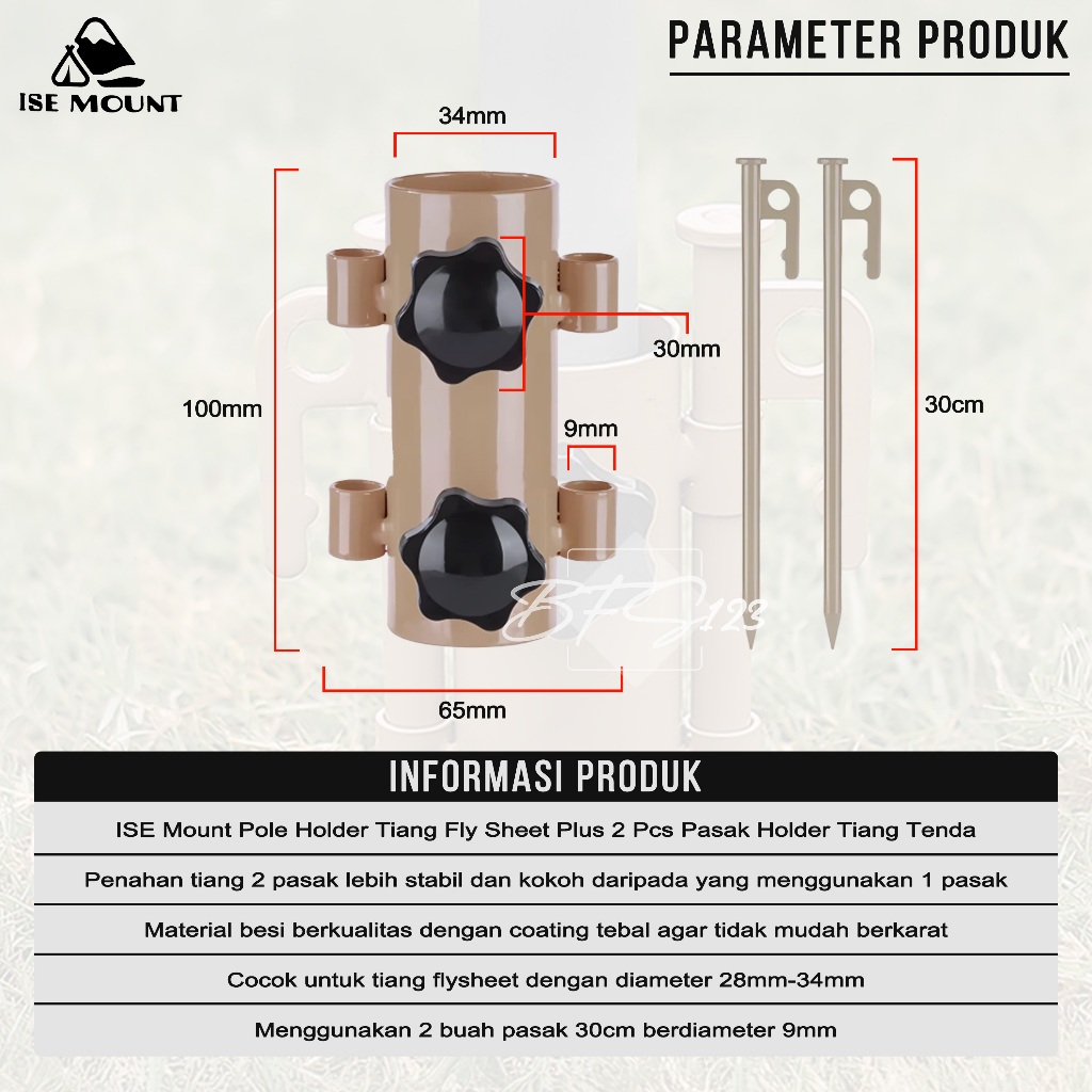 Ise Mount Pole Holder Tiang Fly Sheet Plus 2 Pcs Pasak Kanopi Tenda Stand Holder Tiang Tenda Camping 30 Cm