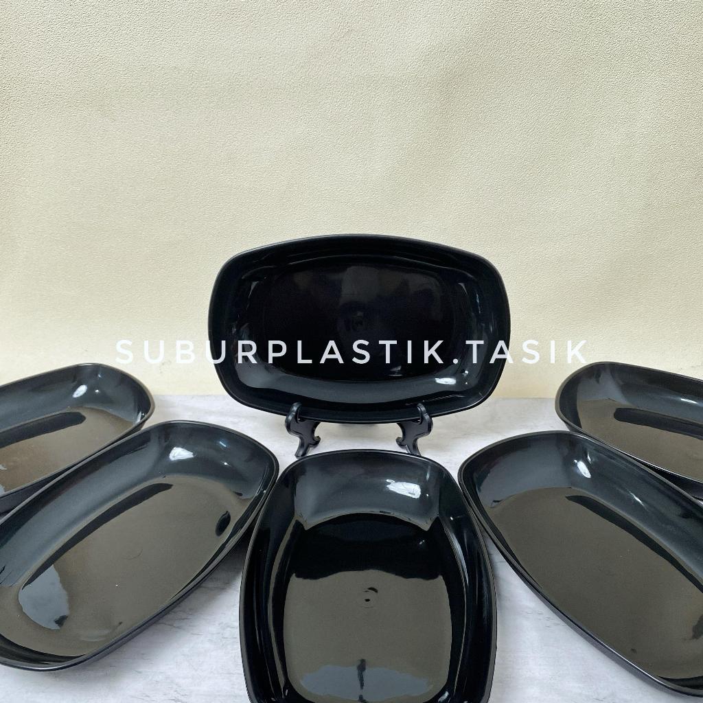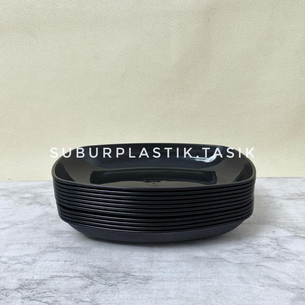 [6 & 12 Pcs] Piring Lodor Hitam Segi New Cornelius 630 | Piring Sajian Makanan Bahan Plastik