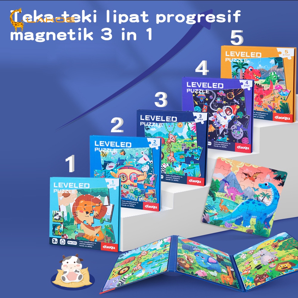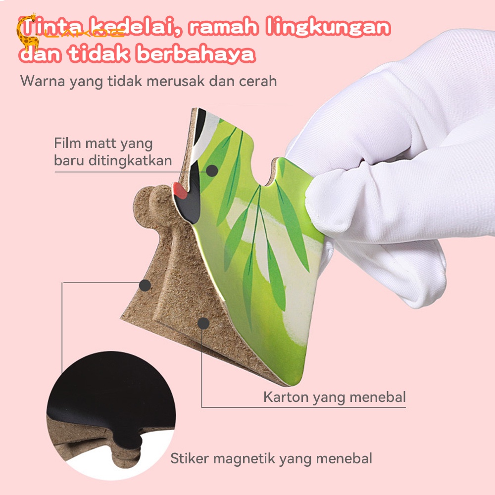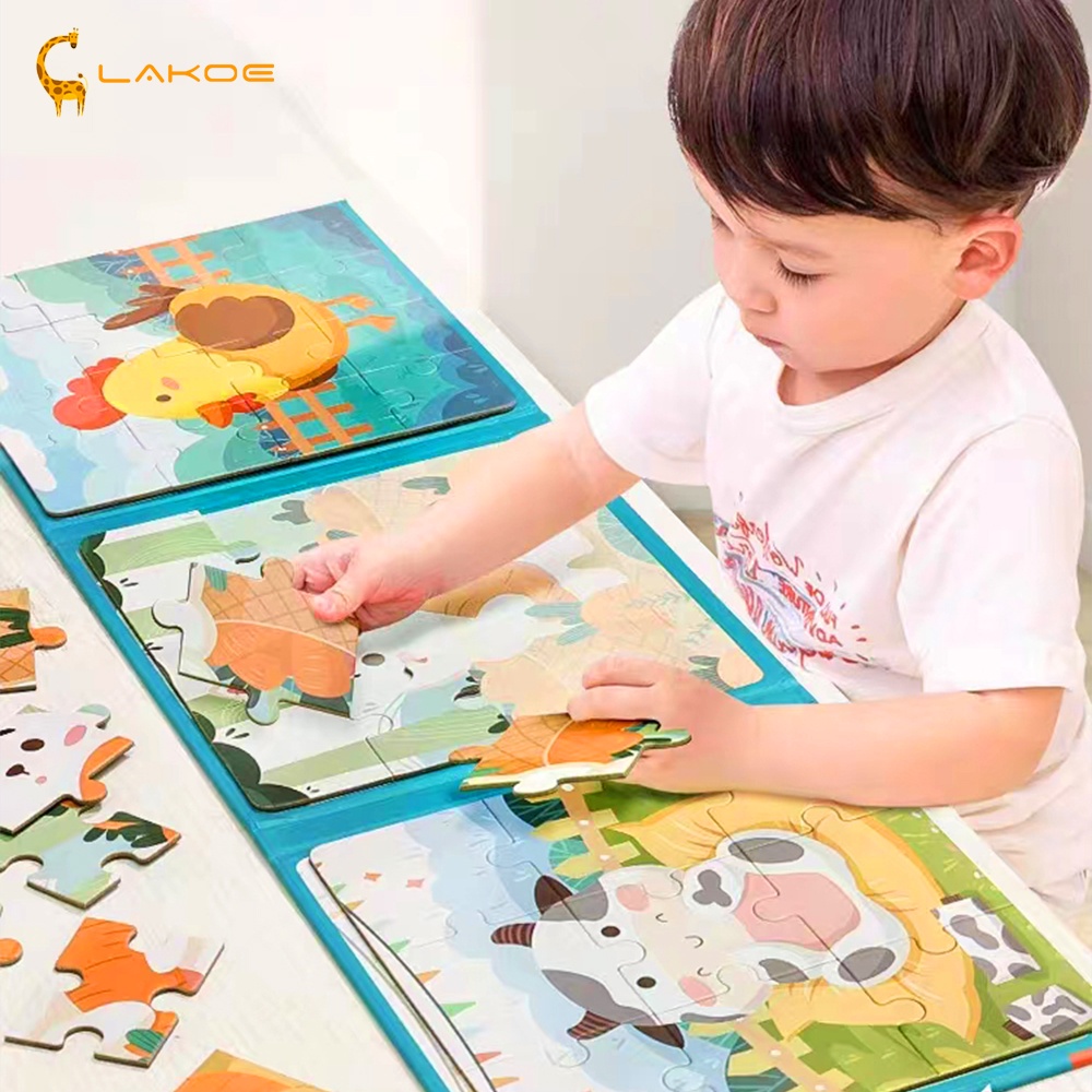 DP 0 LAKOEOFFICIALMALL Mainan Puzzle Kayu Anak Buku Puzzle Magnet Anak 3 IN 1