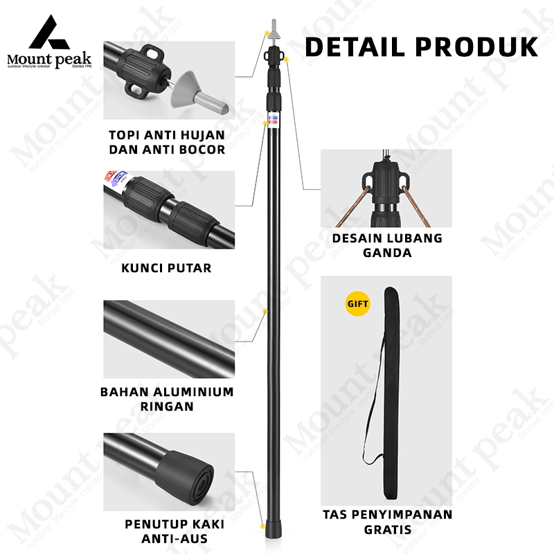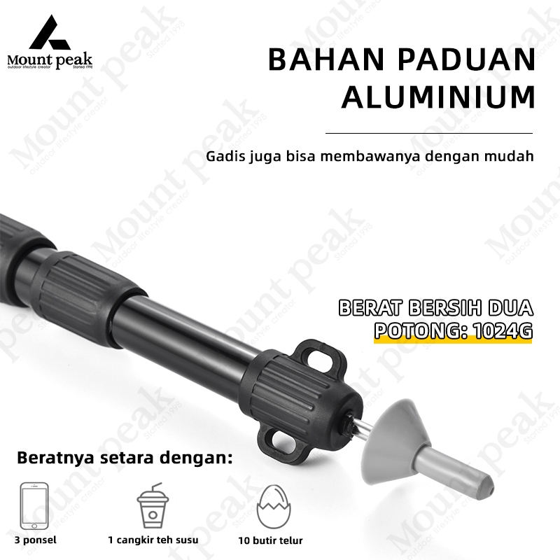Mountpeak Tiang Tenda Aluminium Flysheet 2,8M Penyesuaian Teleskopik Empat Bagian