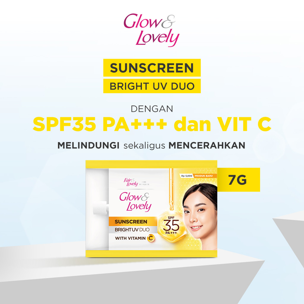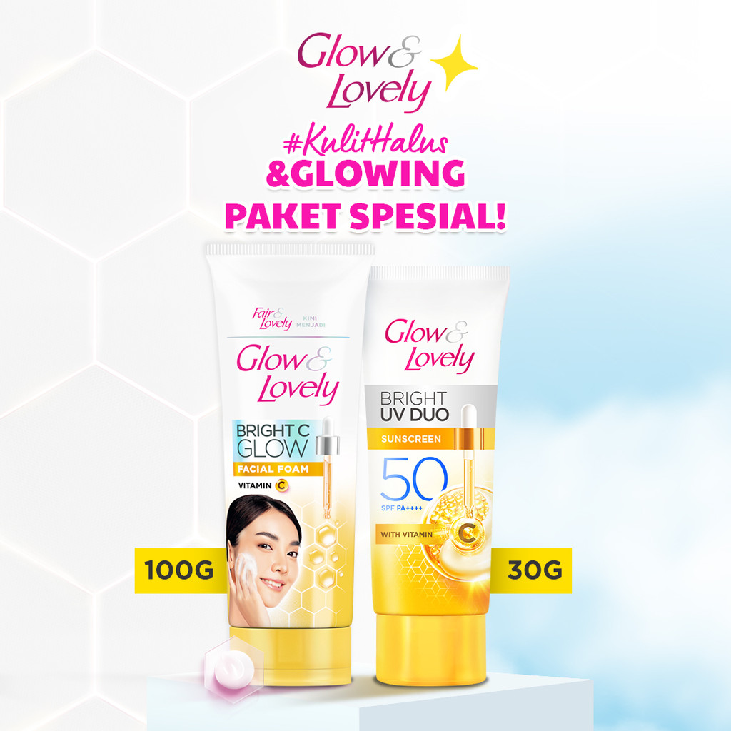 Glow & Lovely Bright C Glow Facial Foam 100g & Sunscreen Wajah UV Duo SPF 50 30gr Mencerahkan Menutrisi untuk wajah lebi