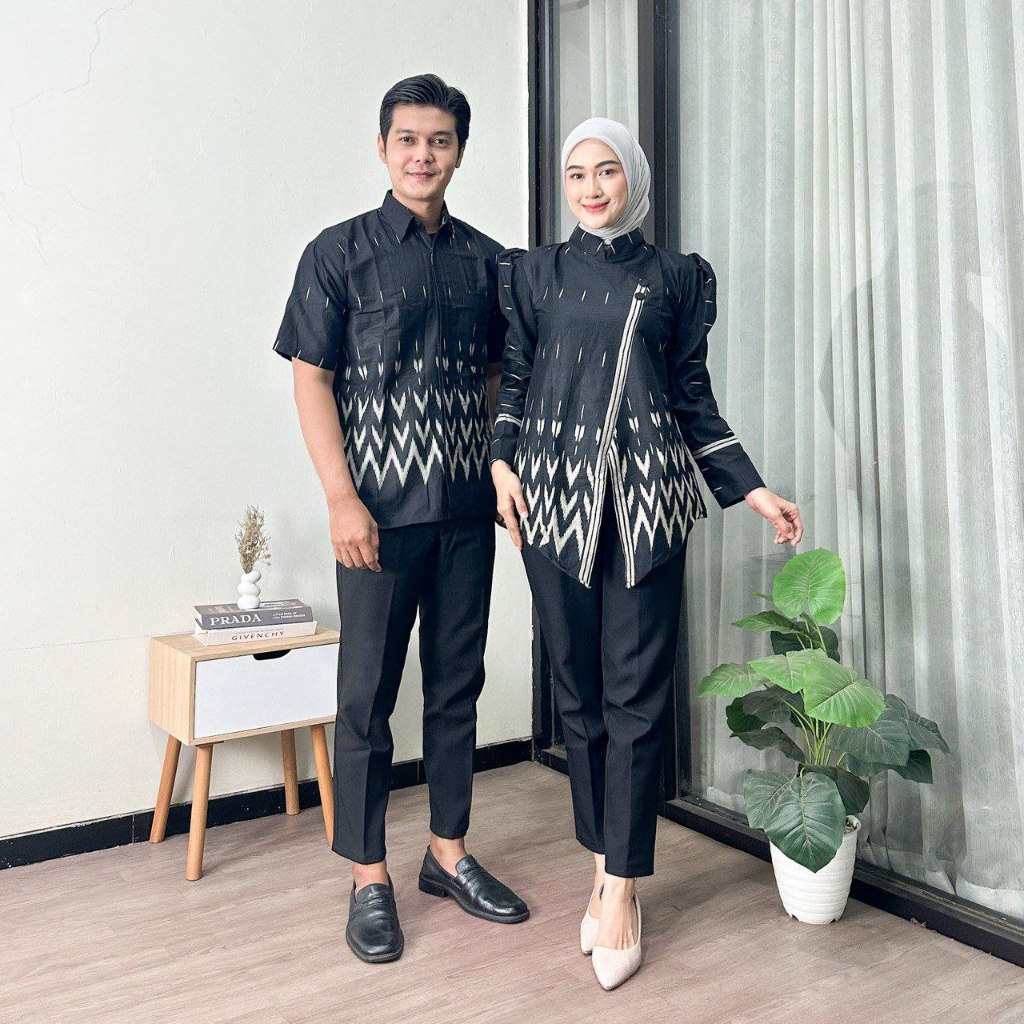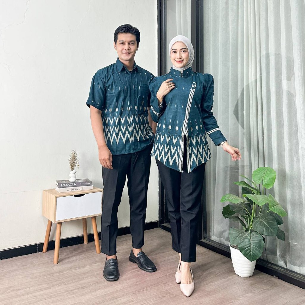 Baju Batik Couple Pasangan Kekinian Motif Puff Azura Baju Batik Wanita Modern Kantor Elegan Batik Jumbo