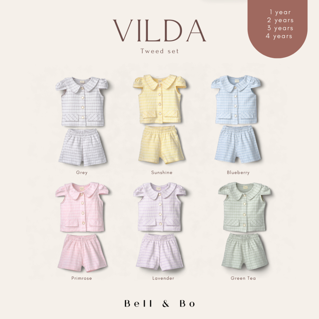 Bell & Bo - Vilda Setelan Baju Anak Perempuan | Bahan Tweed Premium | Usia 1–4 Tahun