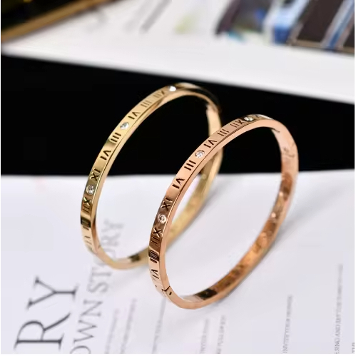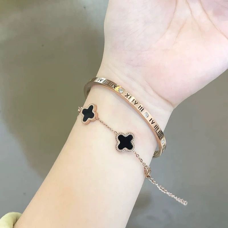 SET GELANG BANGLE ROMAWI DAN GELANG BUNGA CLOVER TERBARU ANTI LUNTUR DAN ANTI KARAT