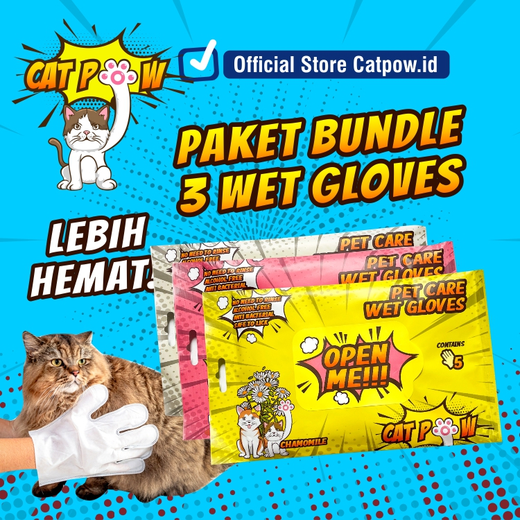 DP 0 CATPOW Bundle 3 Pet Wet Gloves – Sarung Tangan Mandi Grooming Tanpa Bilas