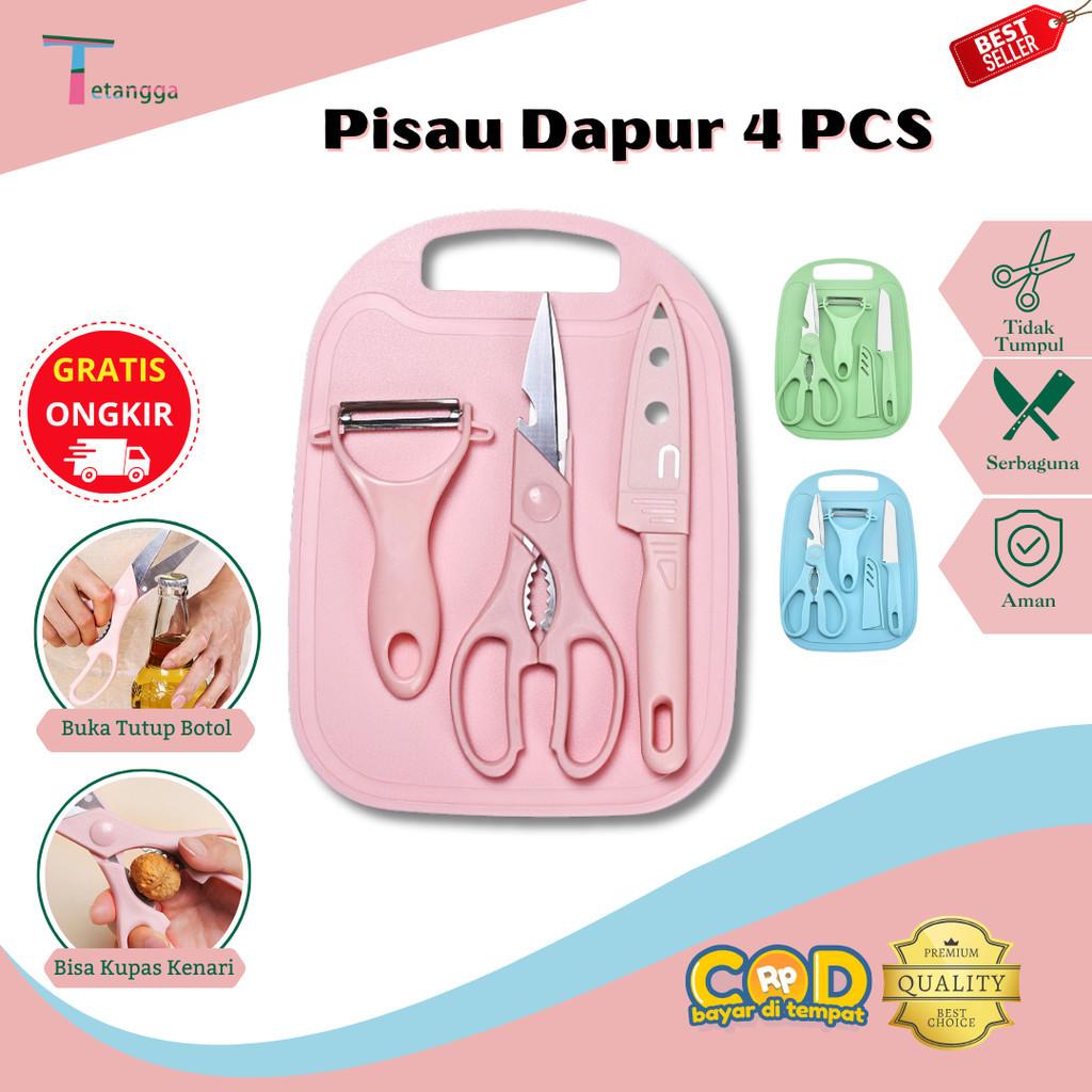 4PCS PISAU SET Pisau Stainless Talenan Set Knife Pisau Buah - ANTI KARAT - SUPER TAJAM VS-1807