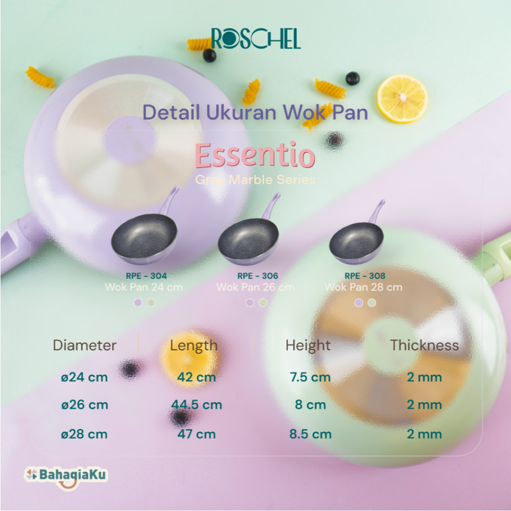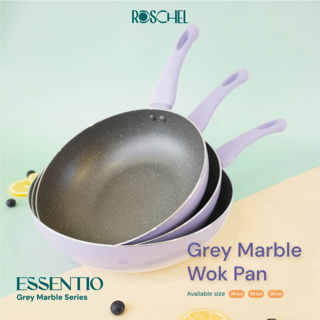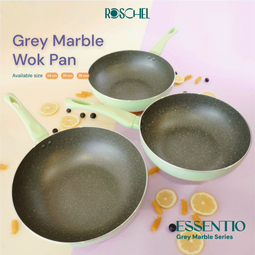 Roschel Essentio Marble Non-Stick Wok Pan Panci Wajan Penggorengan Kuali Anti Lengket 24 , 26 , 28 cm