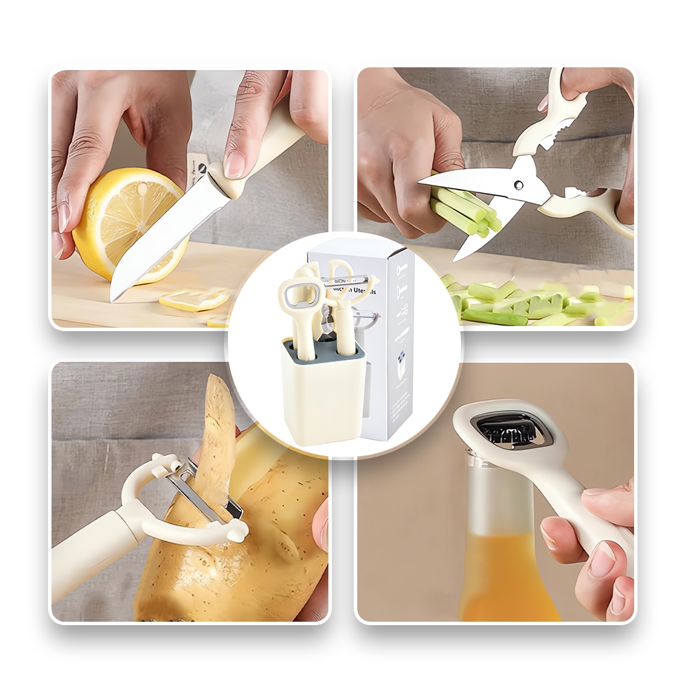 Set Peralatan Dapur 5 in 1 - Alat Kupas, Gunting, Pisau, Parutan, Stainless Steel