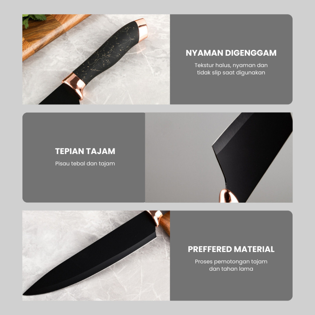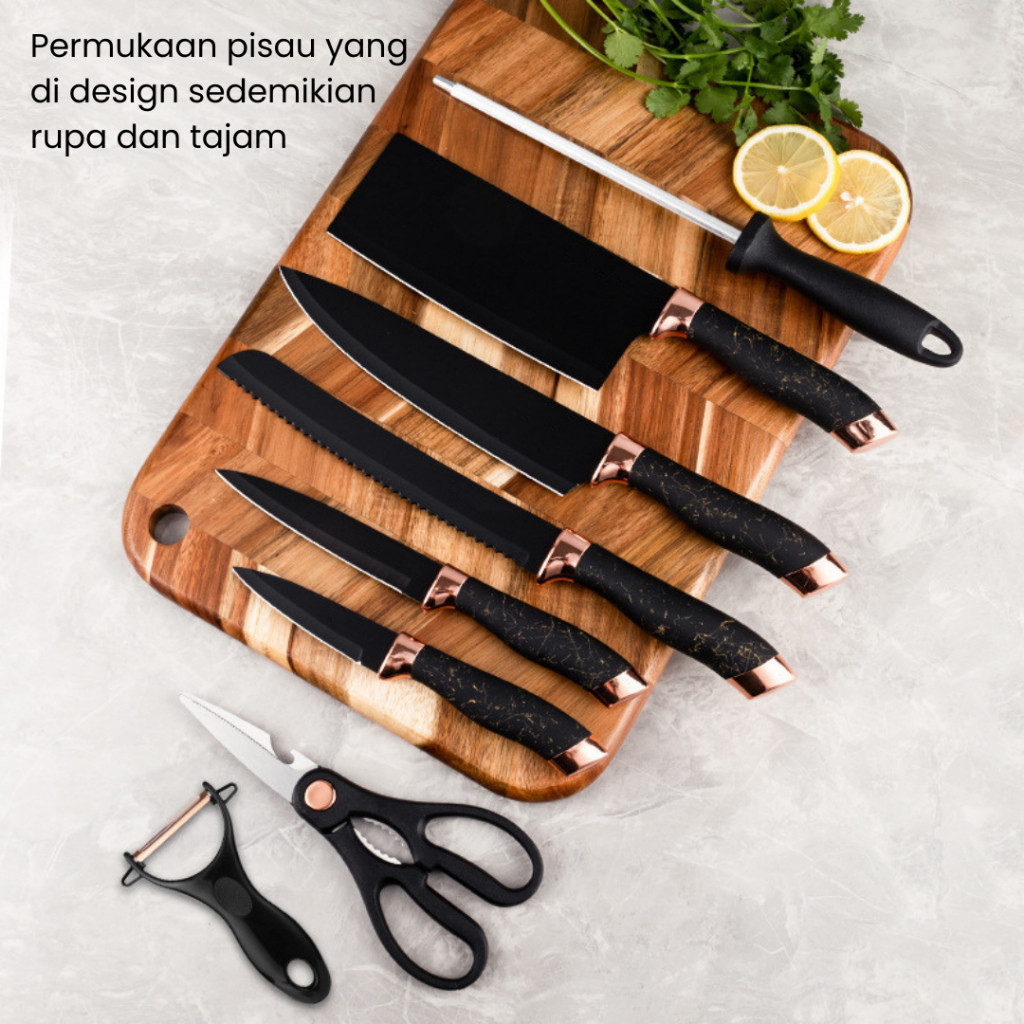 Sundara Home Solution - Pisau Dapur Marble Set 9 in 1 / Japanese Luxury Kitchen Knife Stainless Steel Multifungsi