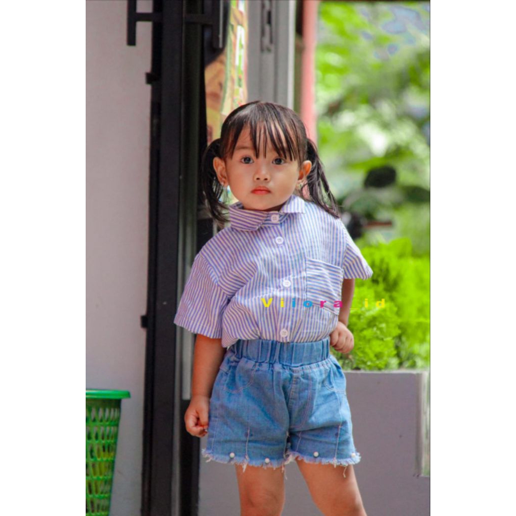 Kemeja Salur Anak Perempuan Naila Atasan Anak Usia 2-11 Tahunkemeja Anak Motif Garis Garis