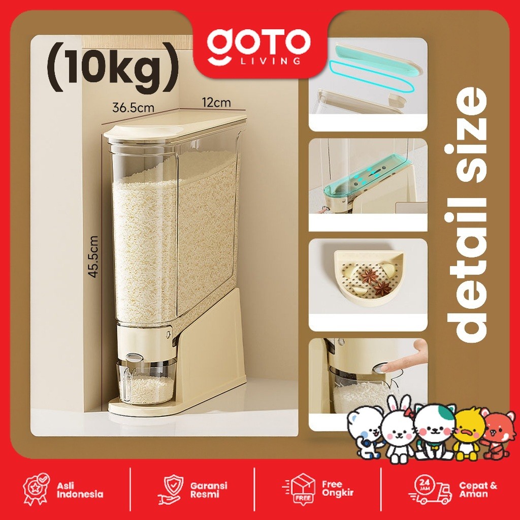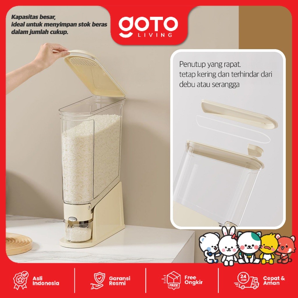 Goto Riselin Rice Dispenser Tempat Wadah Penyimpanan Beras 5Kg 10Kg