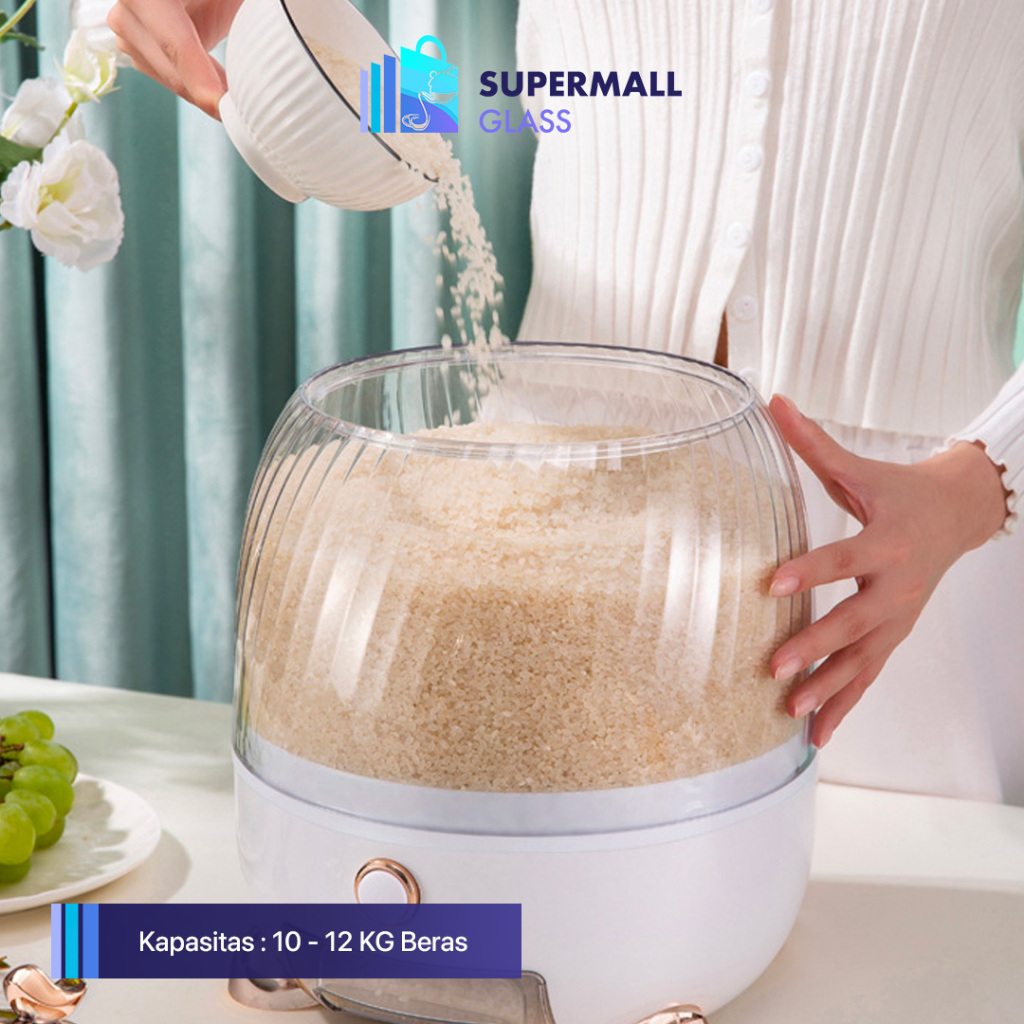 Supermall Glass | Dispenser Beras Estetik Kapsul Mewah Antik | Rice Dispenser | Wadah Penyimpanan Beras | Rice Bucke