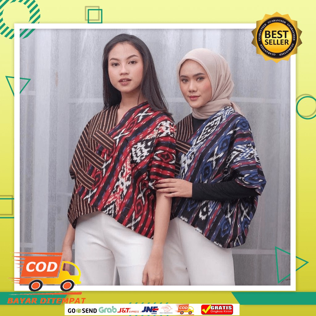 Crop Top Etnik Batik Model Over Size Atasan Tenun Blus Kantor Atasan Songket Mafia Batik Outer Tenun