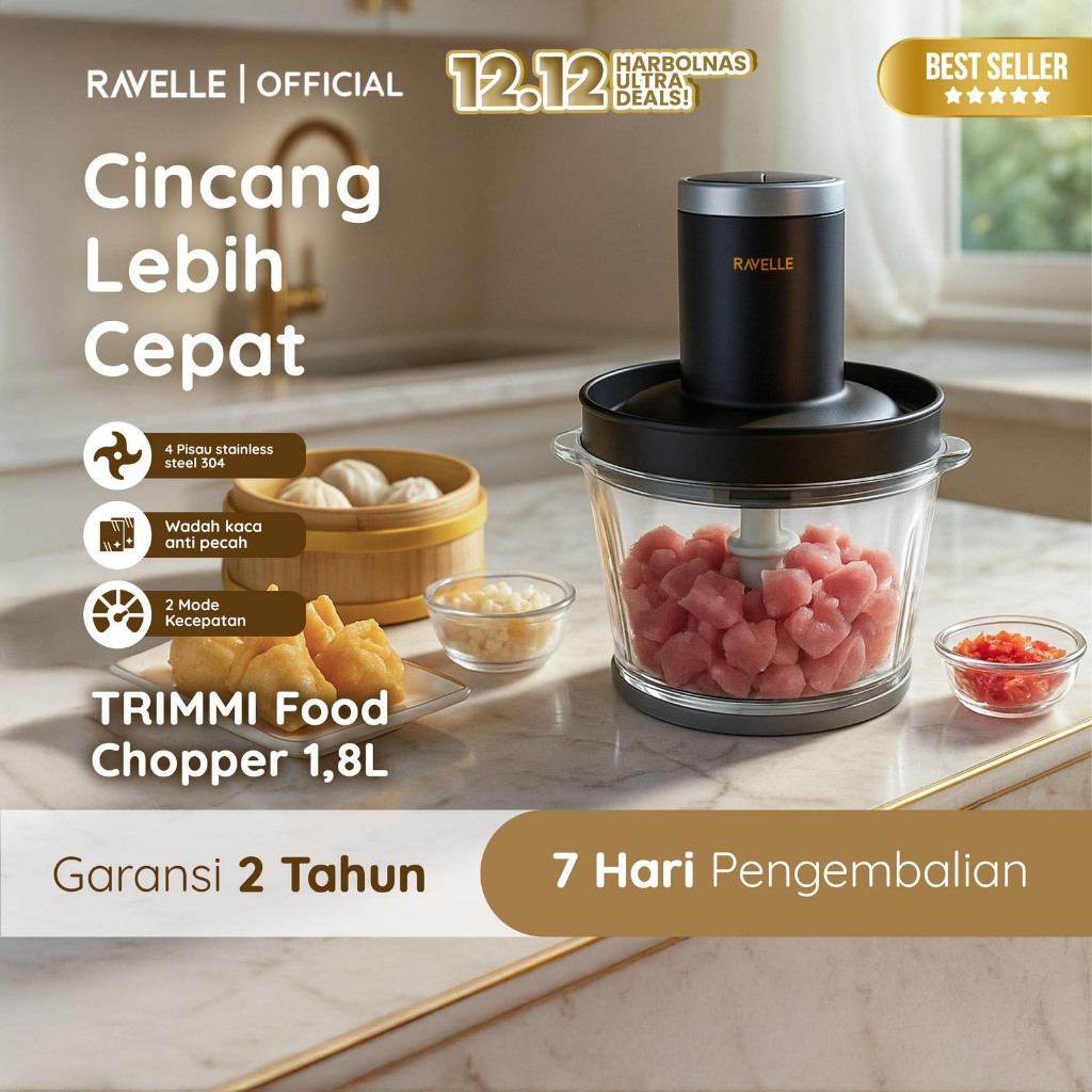 Ravelle Chopper Trimmi Premium Food 1,8L - Penghalus Bumbu Dan Penggiling