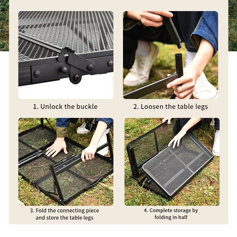 Joy Meja Lipat Grid Meja Lipat Piknik Meja Outdoor Aluminium Portable Praktis Serbaguna Ketinggian Yang Dapat Disesuaika