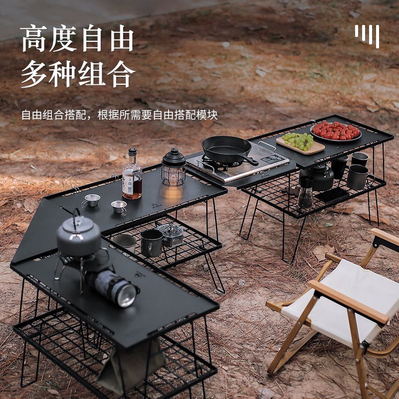 Beige Meja Lipat Camping Outdoor Steel Mesh Bbq Portable