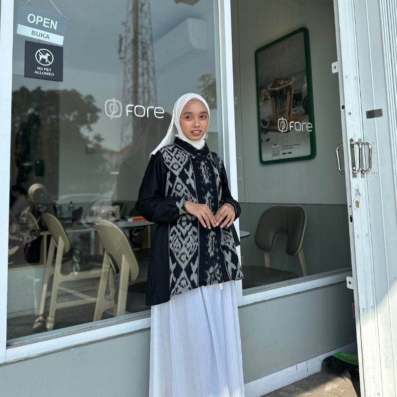 Rasaraya Batik Layla Kemeja Wanita Tenun Troso Jepara - Atasan Hitam Lengan Panjang Formal Busui