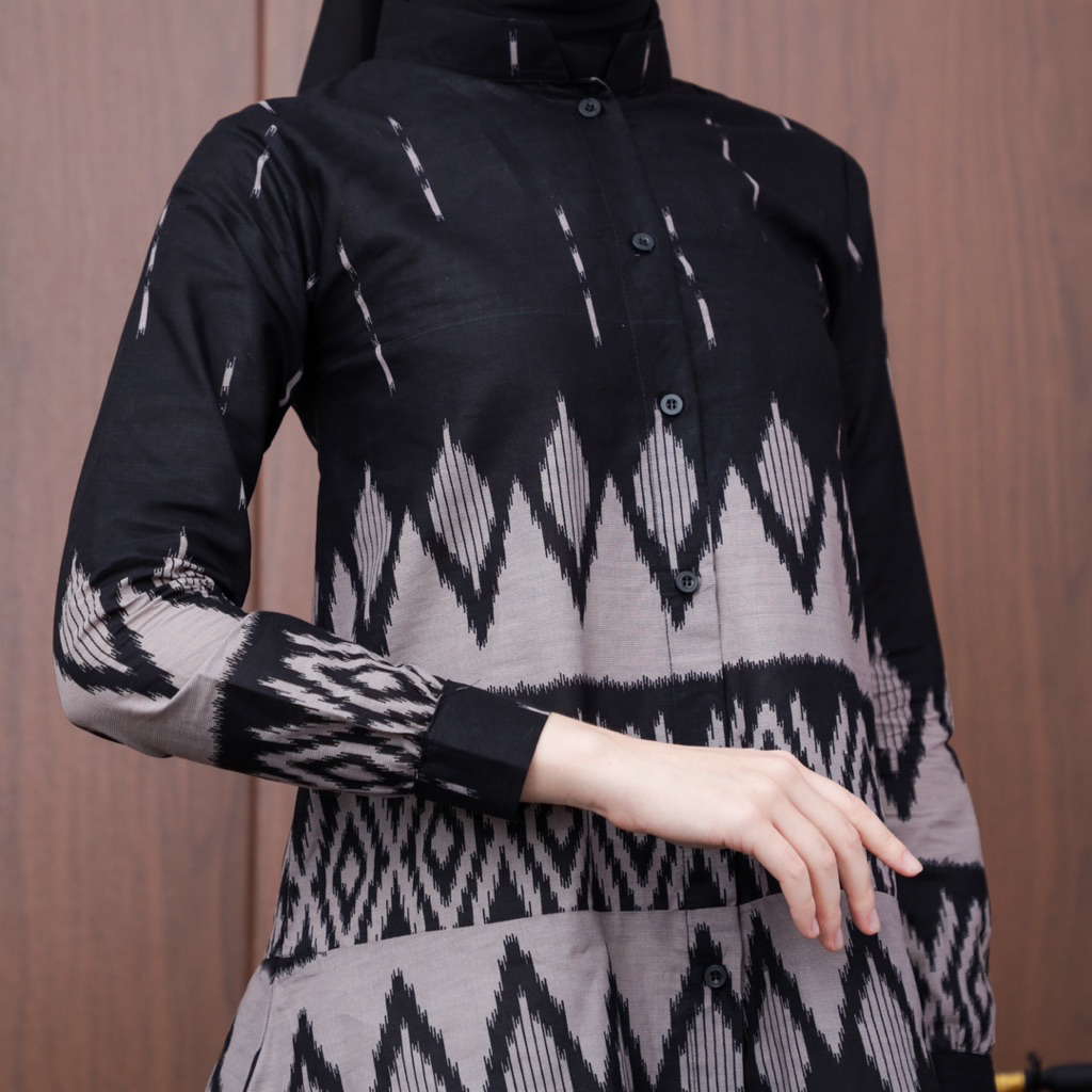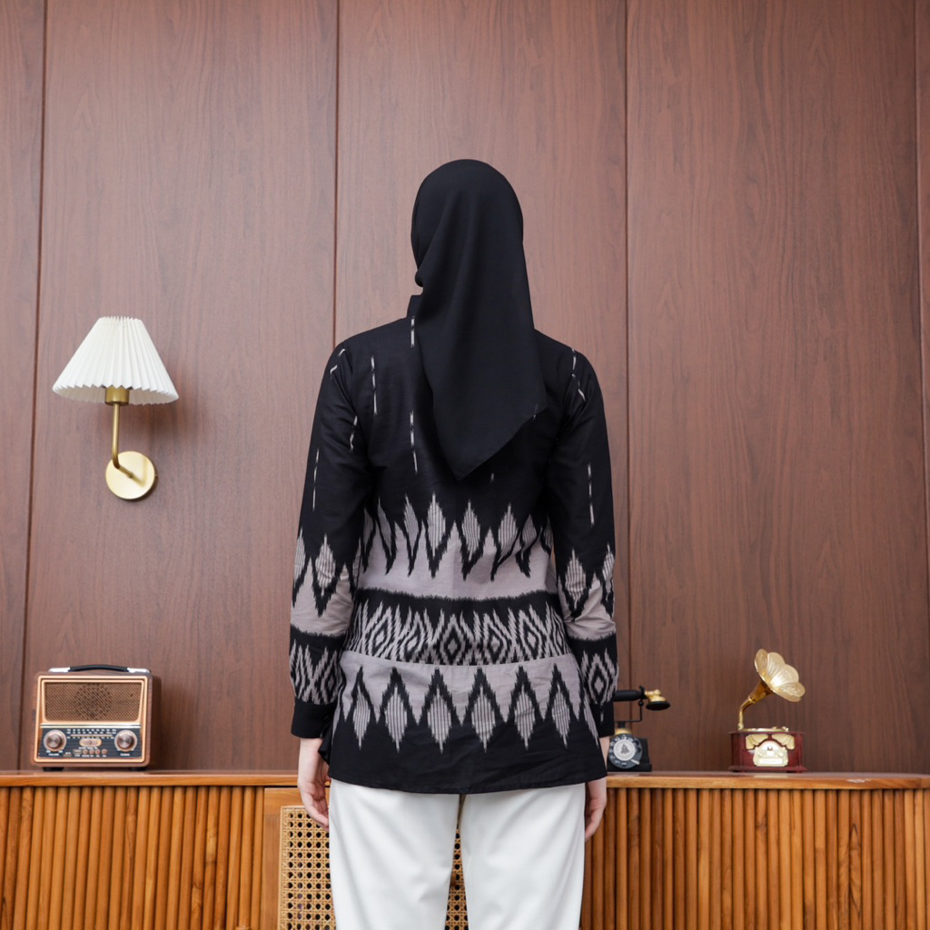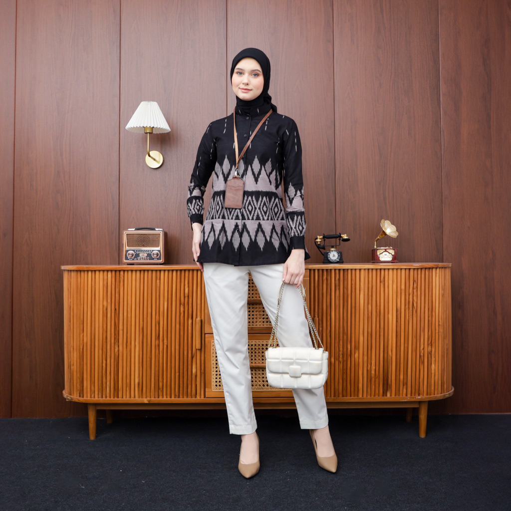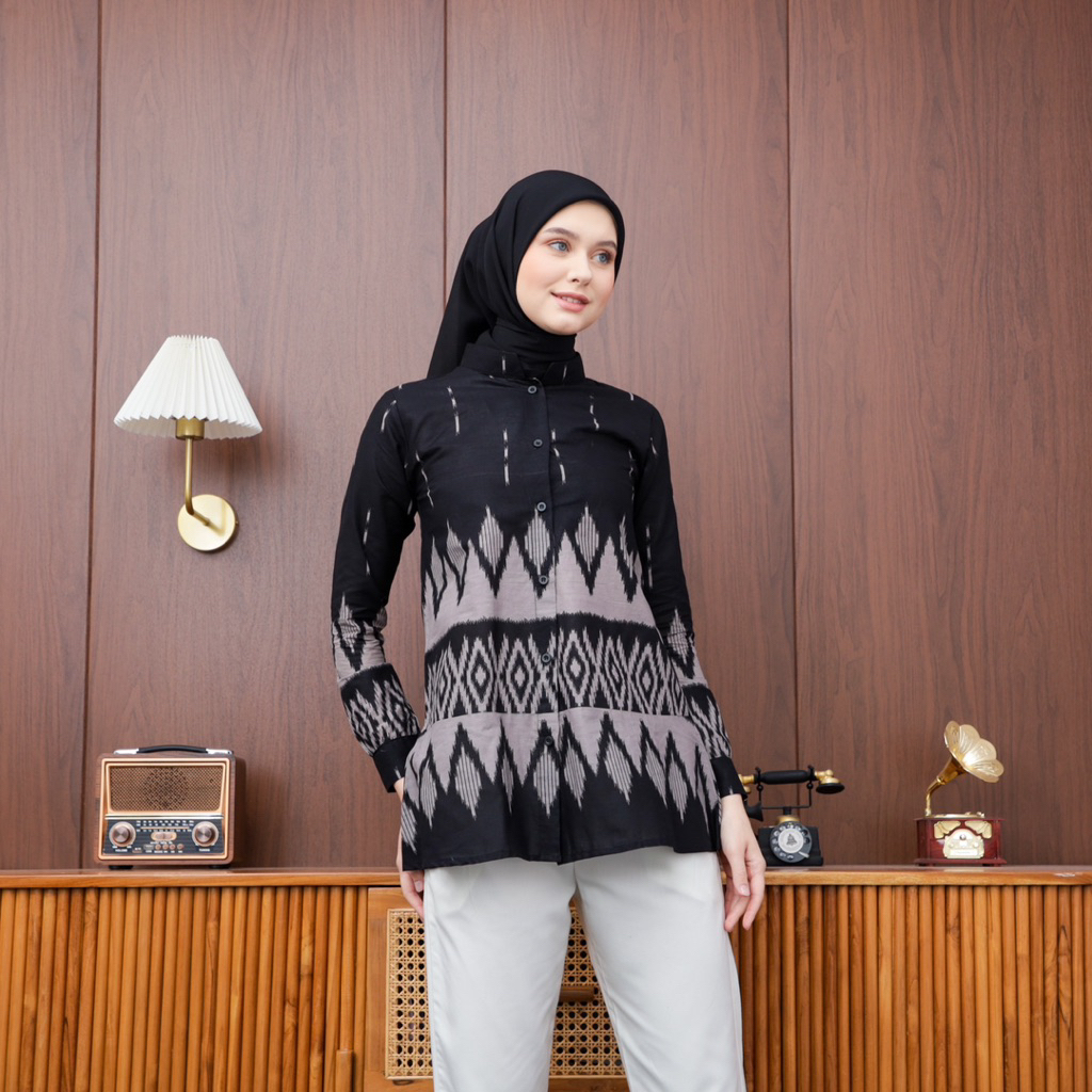 Allea Blouse Atasan Batik Kerja Modern Bahan Katun Full Kancing Depan Motif Etnik