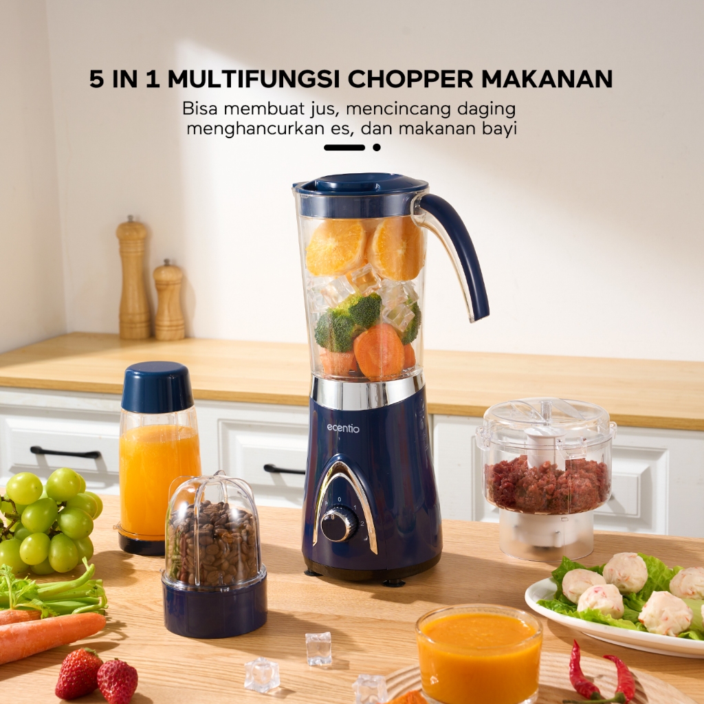 Ecentio Chopper Blender 1000Ml+500Ml+500Ml+300Ml Juicer Blender Bumbu Alat 304 Stainless Steel Penggiling Dagin
