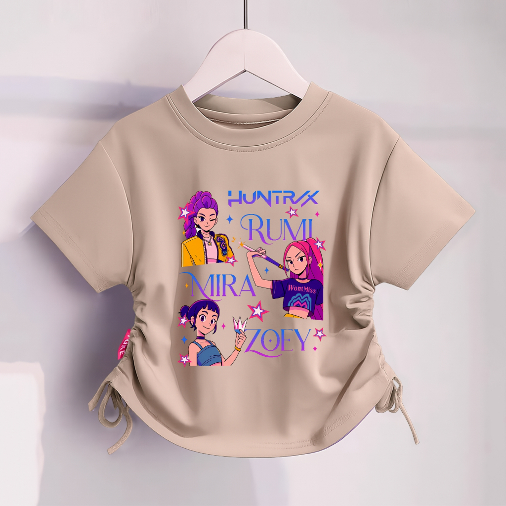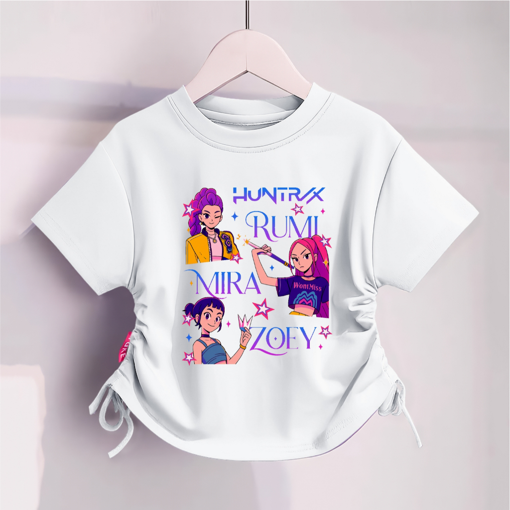 Kaos Anak Perempuan Huntrix Kpop Demon Hunter Model Crop Top Serut Samping Bahan Katun Adem Usia 1-12 Tahun Ukuran S M L