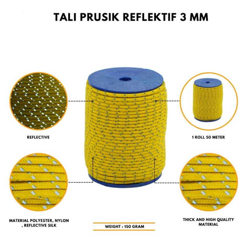 Tali Prusik 3Mm Reflective Menyala-Tali Prusik Reflektive-Tali Tenda Menyala