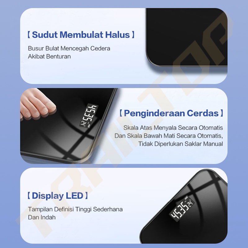 TrailTop Timbangan Badan Digital Pengukuran Akurat Timbangan Layar LCD Kaca Tempered Berat Max 180kg