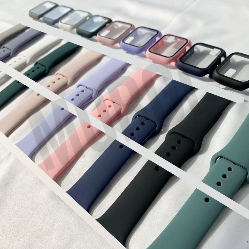Tempered Glass Protector Untuk Apple Watch Cover + Strap Series 6 SE 5 4 3 2 1 40mm 44mm iWatch 42mm 38mm Set Case