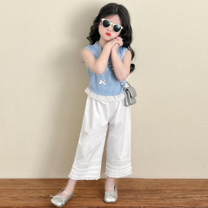 Bykiddos - Atasan Berlin Top Anak Perempuan Lengan Kutung Renda Atasan Anak Perempuan