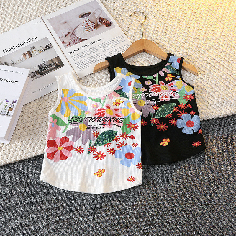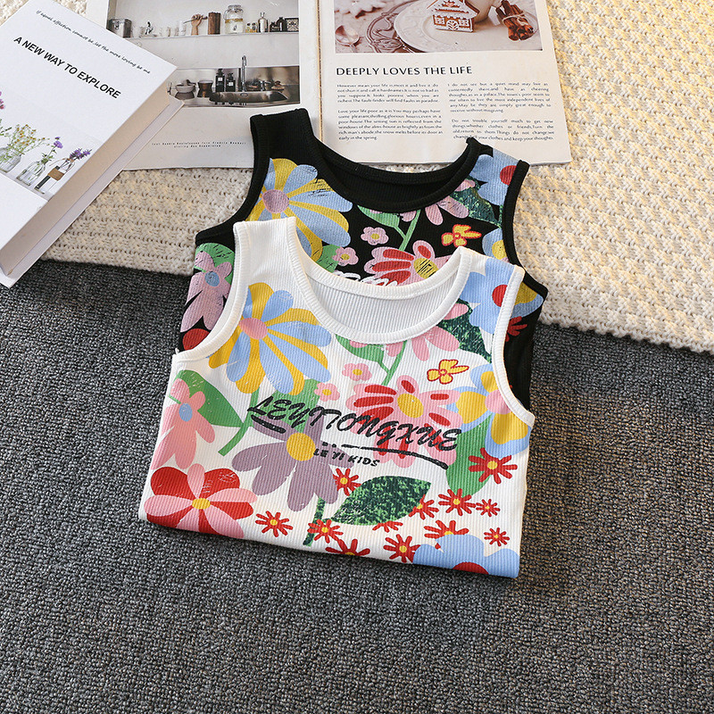 Kaos Singlet Anak Perempuan Bahan Strech Motif Hawai Bunga Full Print