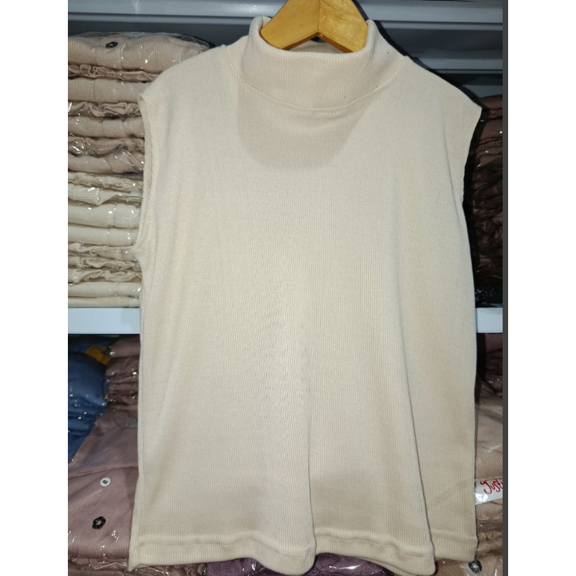 Manset Baju Tanpa Lengan, Manset Kutung Turtleneck Bahan Rib Knit Usia 0-12 Thun