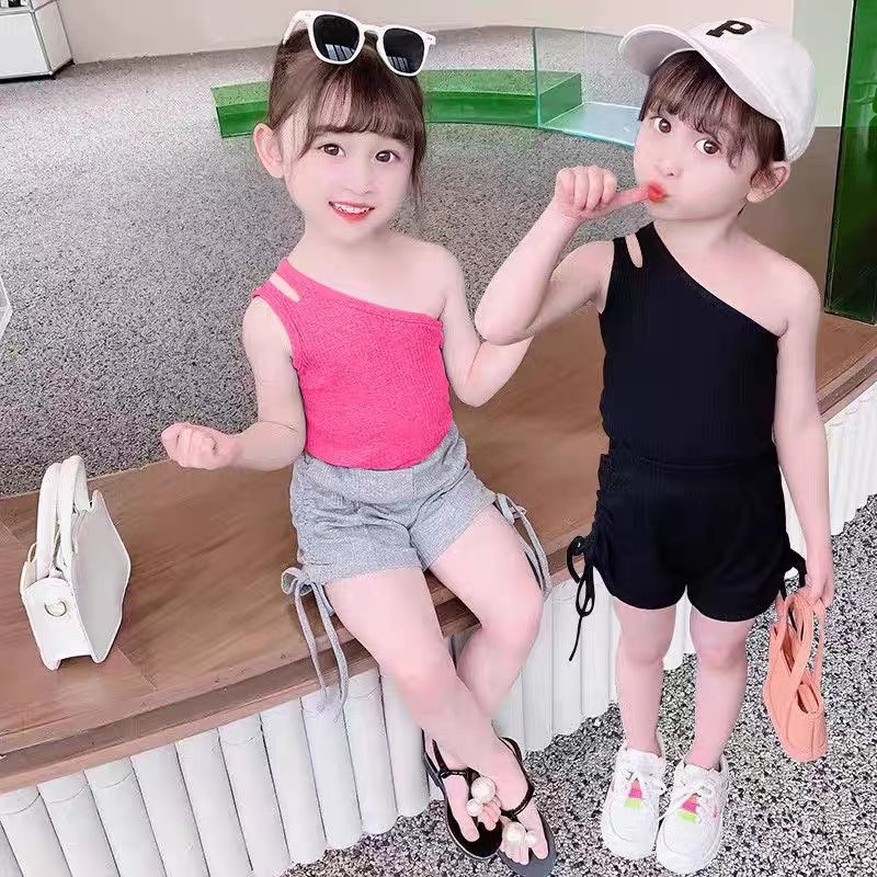 Atasan Kaos Anak Perempuan Tanpa Lengan Usia 1-8 Tahun Bahan Dropnele Korean Style