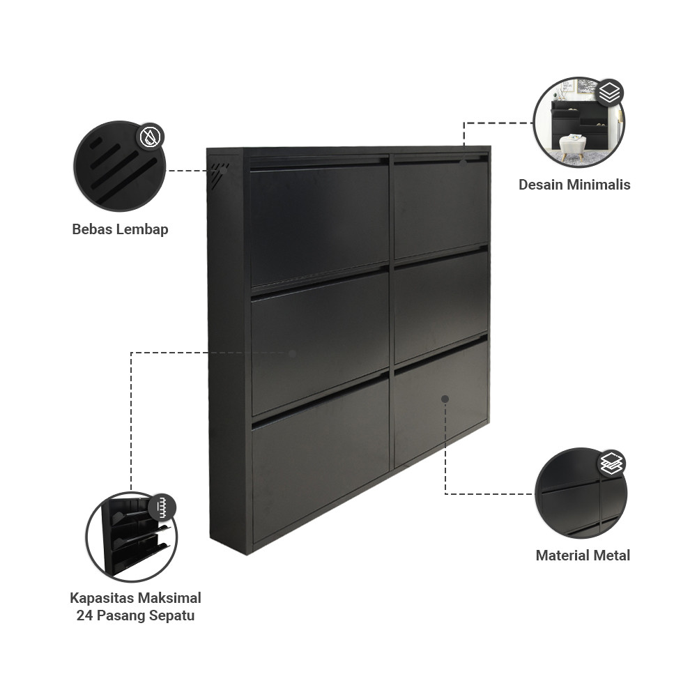 Informa Levi Kabinet Sepatu 6 Tingkat - Hitam Organizer Sandal Dan Sepatu Rak Lemari Alas Kaki Serbaguna Tempat Penyimpa