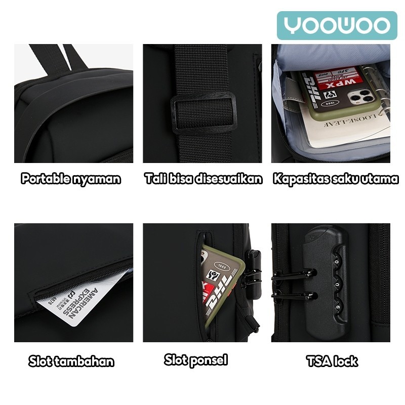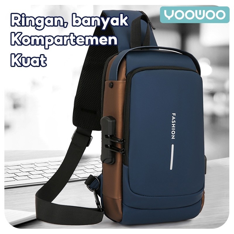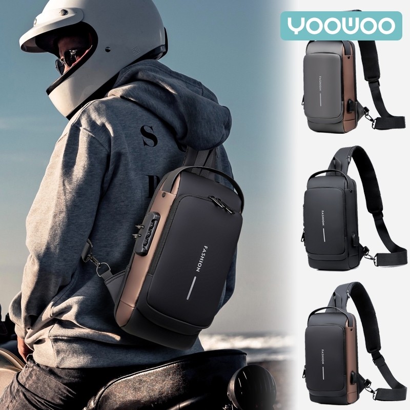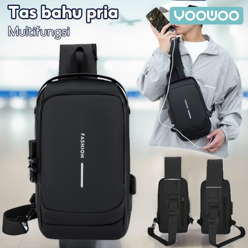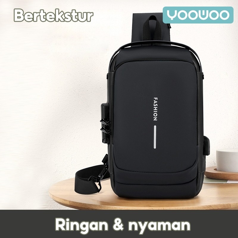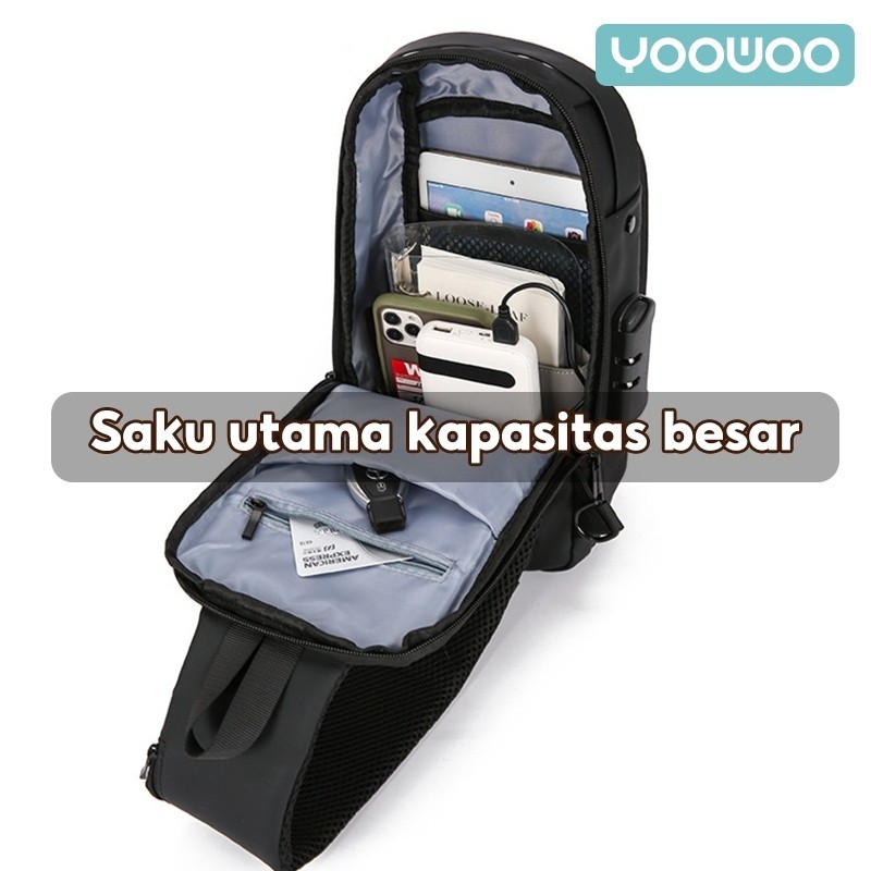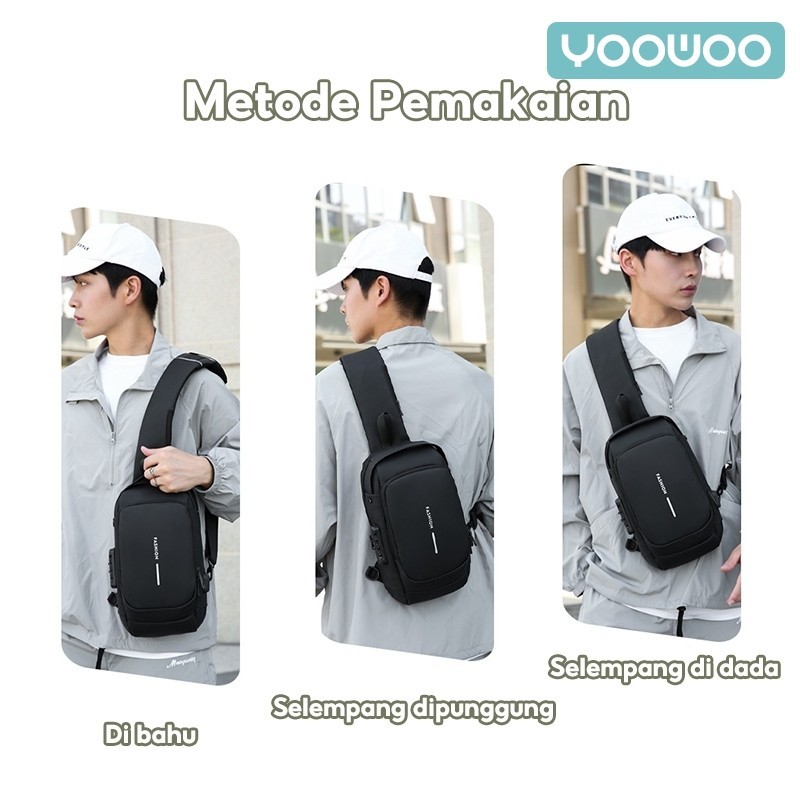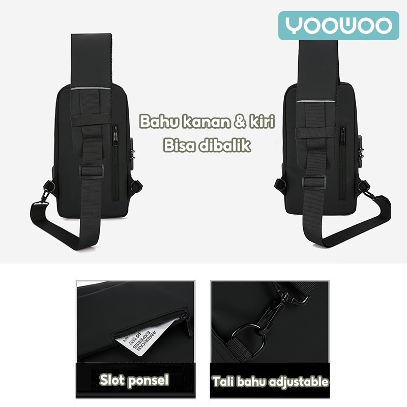 Yoowoo Shoulder Bag Tas Pinggang Tas Selempang Usb Charger Port Pria Wanita Unisex