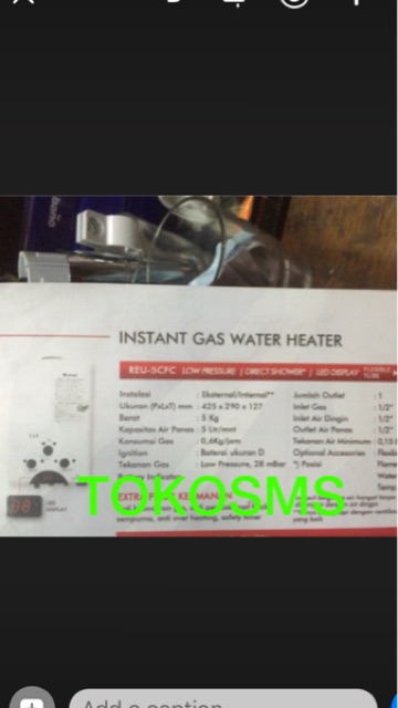 water heater gas rinnai REU 5CFC pemanas air REU5cfc RINNAI REU 5 cfc pemanas air gas lpg rinnai