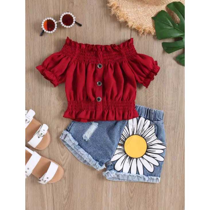 Blouse Sabrina Kerut Anak Perempuan Lengan Pendek Bahan Cringkle Usia 1-6Th Korean Style