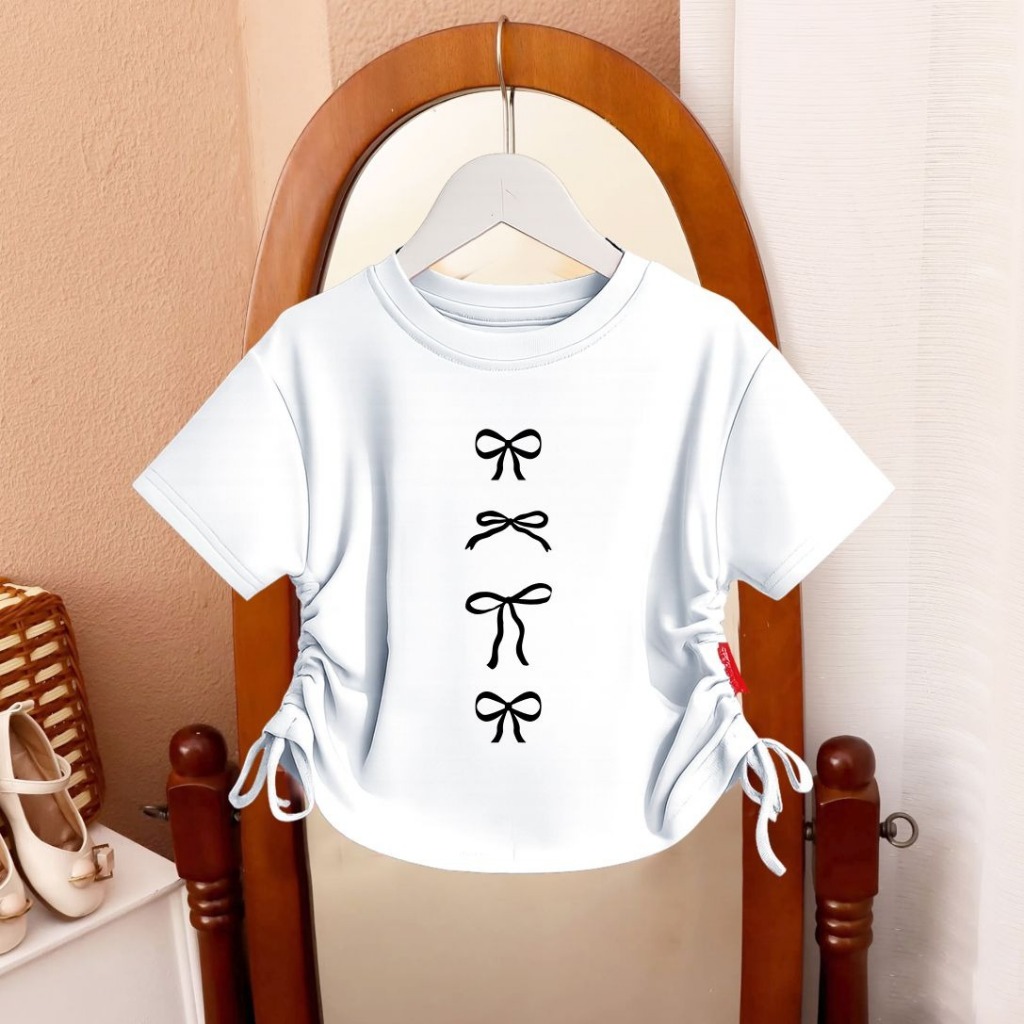 Kaos Anak Cewek Lengan Pendek Fashionable Baju Crop 4 Ribbon Anak Perempuan Tali Serut Usia 1 - 12 Tahun