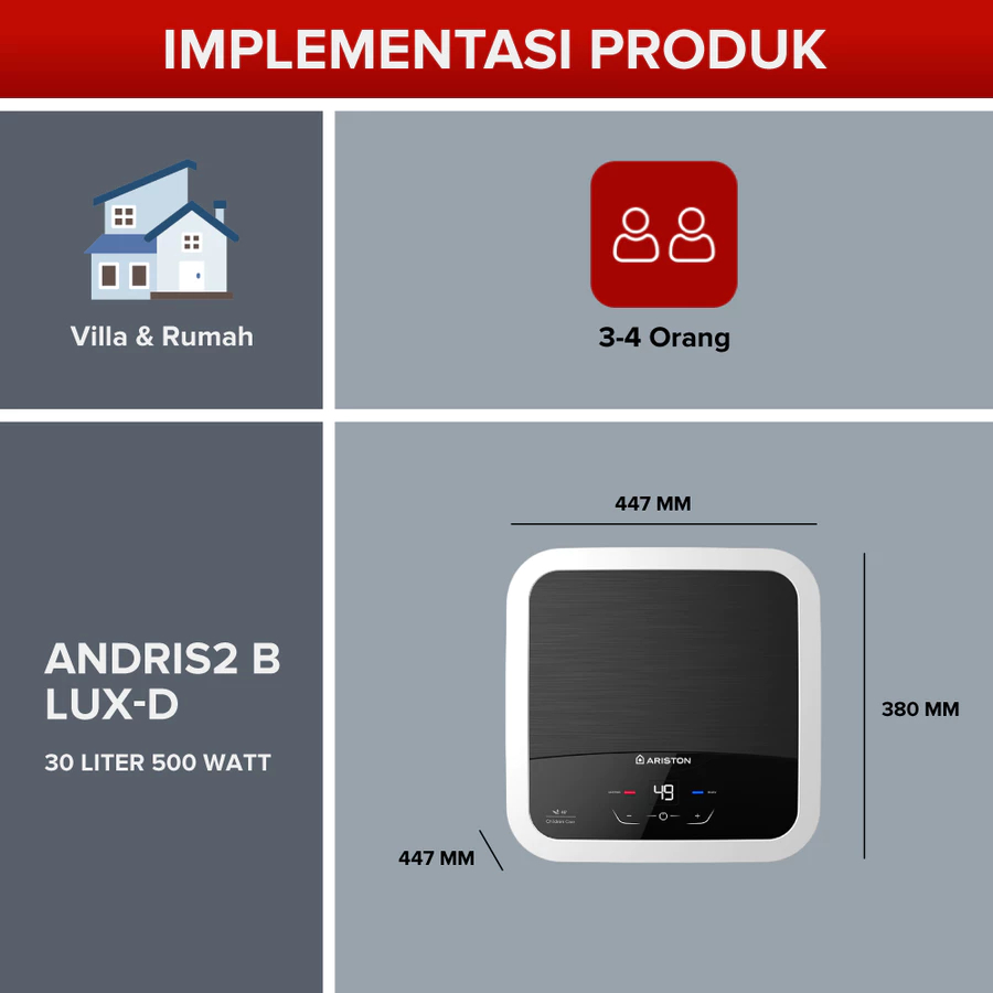 ARISTON AN2 30 LUX / Pemanas Air Listrik Andris2 LUX-D 30 Liter 500 Watt