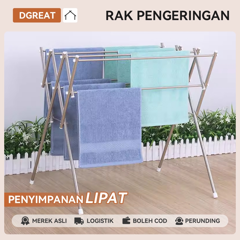Jemuran Baju Handuk stainless steel lipat besi kuat Tiang pengering pakaian multifungsi Rak pengering pakaian lantai dry