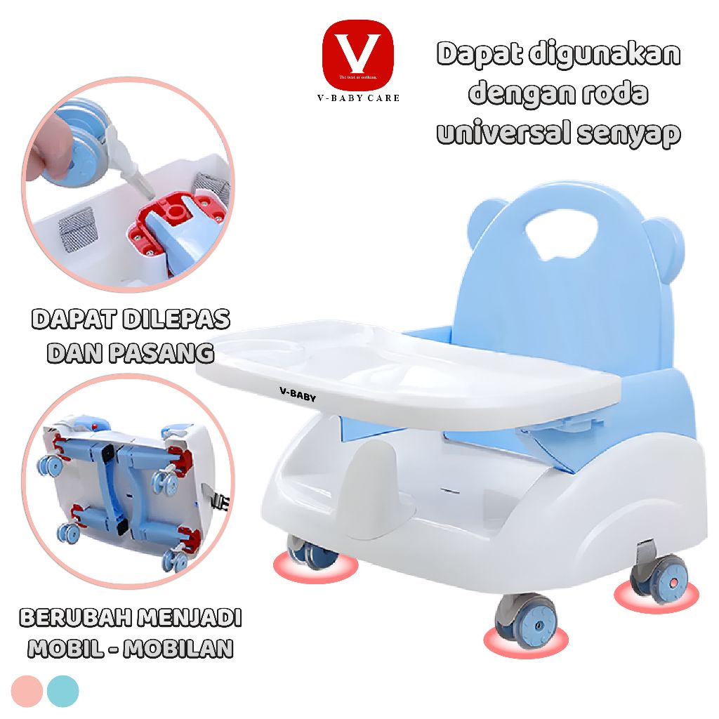 V-Baby Care Kursi Makan Bayi Kursi Makan Balita Dapat Dilipat Dan Ada Roda- G318